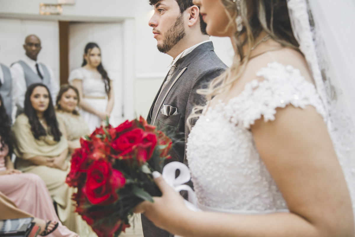 O casamento da Giulia e do Gustavo foi muito lindo, eles escolherão realizar a cerimonia na igreja que já frequentavam e a festa em um salão na região de São Paulo. A família e eles estavam repletos de felicidade. Foi uma festa super gostosa e com muita diversão, amamos registrar esse momento único na vida deles.